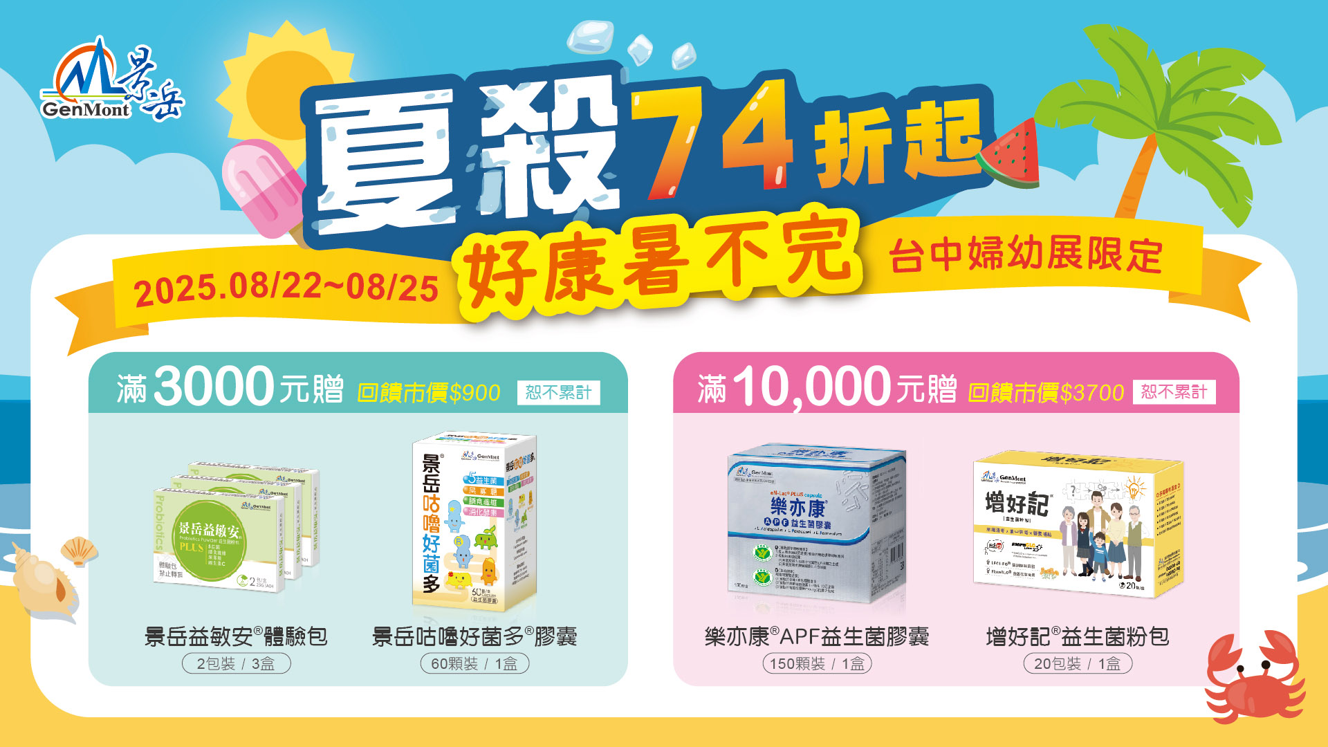 單筆消費滿$10000,加贈【輔助調整過敏體質】樂亦康益生菌膠囊150顆1盒、【幫助思緒清晰】增好記益生菌粉包20包1盒(回饋市價$3700)(恕不累計)。