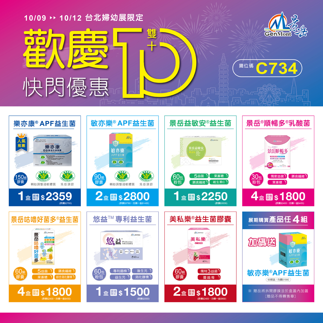 ※ 展期現場註冊官網會員,兌換益生菌體驗包乙份(每人限兌乙份,數量有限、兌完為止)(限新會員)